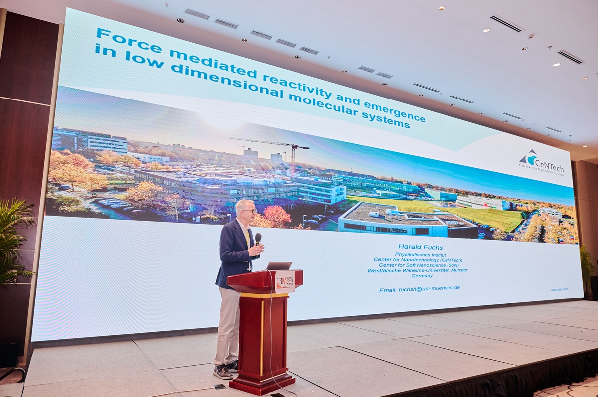 大会上,James Morris、Konstantin Novoselov、王中林、迟力峰、Harald Fuchs、Luisa Torsi、Kostadin Kostadinov分别作以“Applications of Discontinuous Metal Thin Films to Electronics Packaging”“Materials for the Future”“The Triboelectric Nanogenerator - A Disruptive Energy Technology and Sensing Technology”“On-Surface Precise Synthesis of Carbon-Based Functional Molecules and Polymers”“Force Mediated Reactivity and Emergence in Low Dimensional Molecular Systems”“Transforming Antigenic Portable Technologies into Highly Dependable Screening Devices”“SpiCy-MiNT Robotic Technology for Micro and Nano Biomedical Applications”为主题的主旨报告。