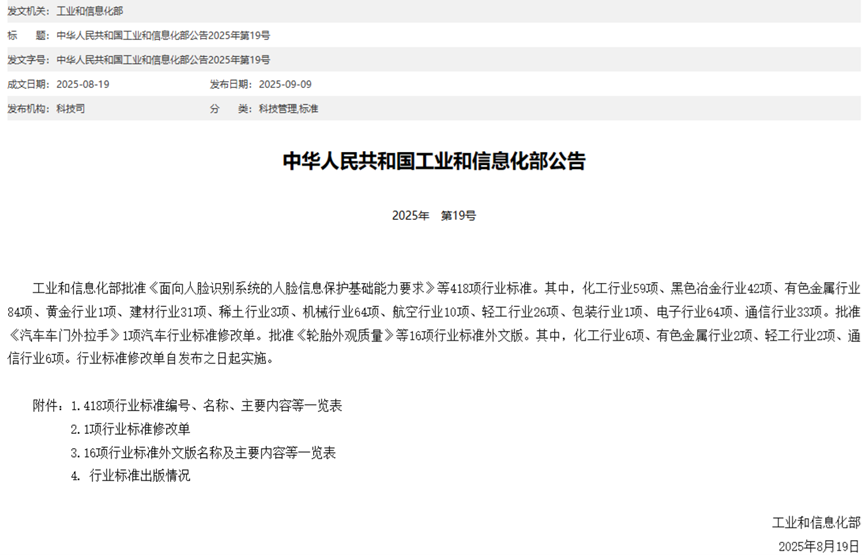 [资料依据:中华人民共和国工业和信息化部公告2025年第19号]